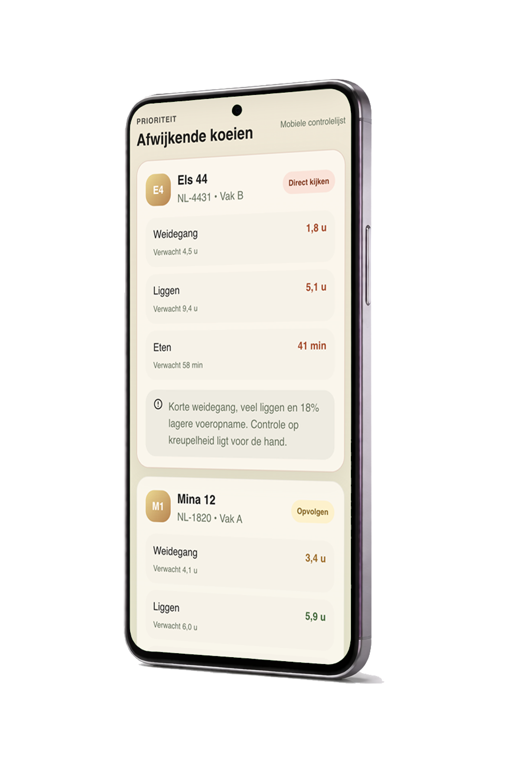 Voor 07:00 ontvangt u een overzicht: welke koeien vandaag aandacht vereisen — met uitleg waarom.